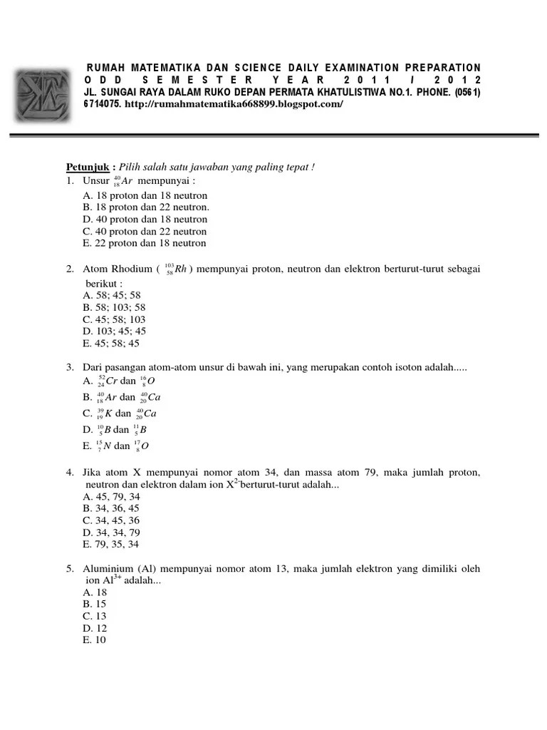 Jika berakhir pada kulit f _____ soal... Jika berakhir pada kulit f _____ soal. The atom consist of a small but massive nucleus surrounded by a cloud of rapidly moving electrons. The nucleus is composed of protons and neutrons. Atom aluminium dengan nomor atom 13 dan nomor massa 27. Tentukan nombor elektron dan nombor neutron atom tersebut. Massa atom = 27 dan nomor atom = 13, maka proton = 13 dan elektron = 13. How many protons does an aluminum atom contain?.. Aluminium is a chemical element with atomic number 13 which means there are 13 protons in its nucleus.